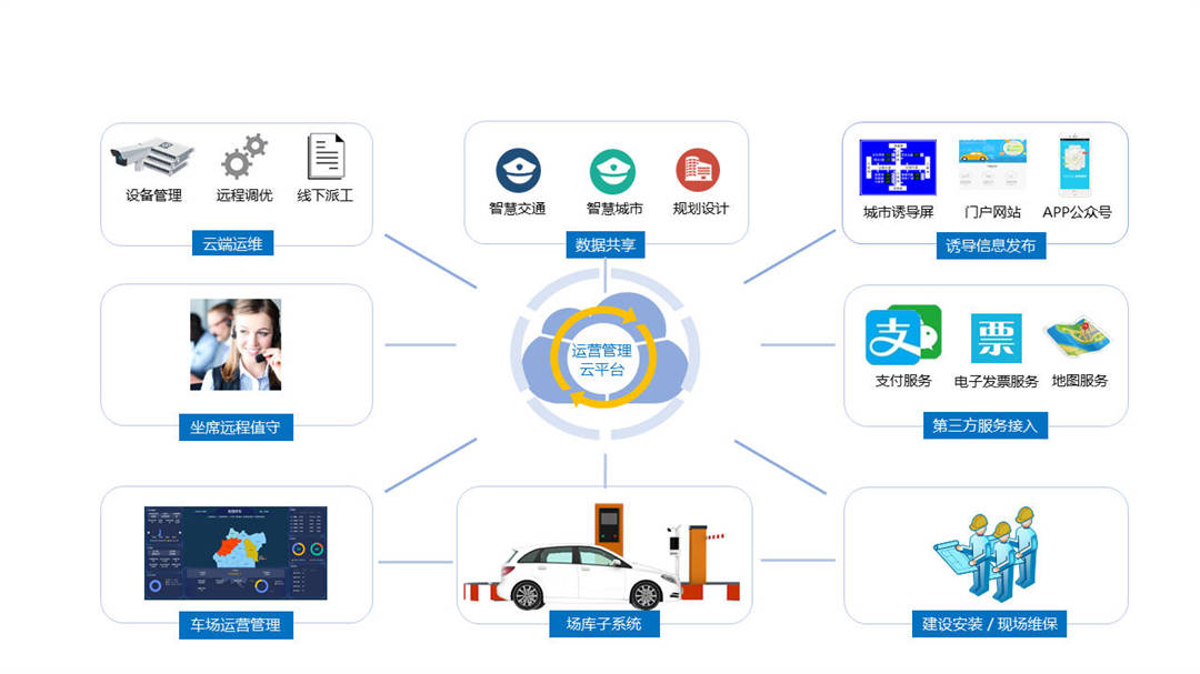 停车场云服务解决方案主要面向各类停车场运营方,广泛适用于各行业不同场景的封闭式停车场的运营管理,以部署在公有云环境的智慧停车运营管理云平台为基础,结合智能硬件设备,实现车场联网管理及云端值守,达成车场降本增收提效的目的,提高车主用户体验。