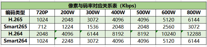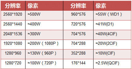 监控摄像机像素与码率对应关系
