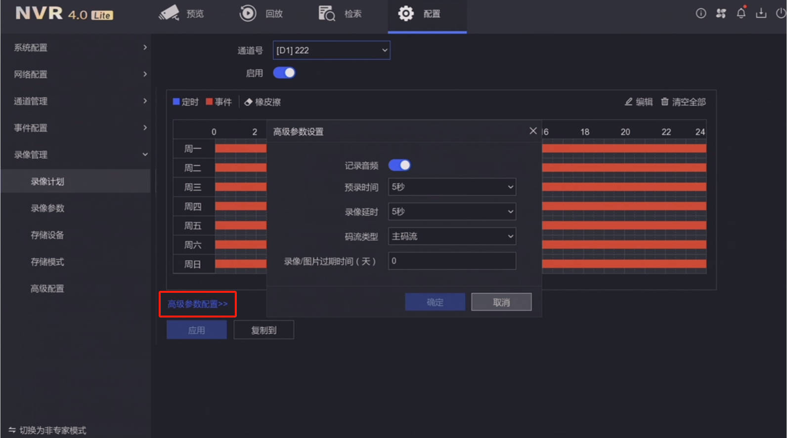 二、配置-录像管理-录像计划-高级参数设置